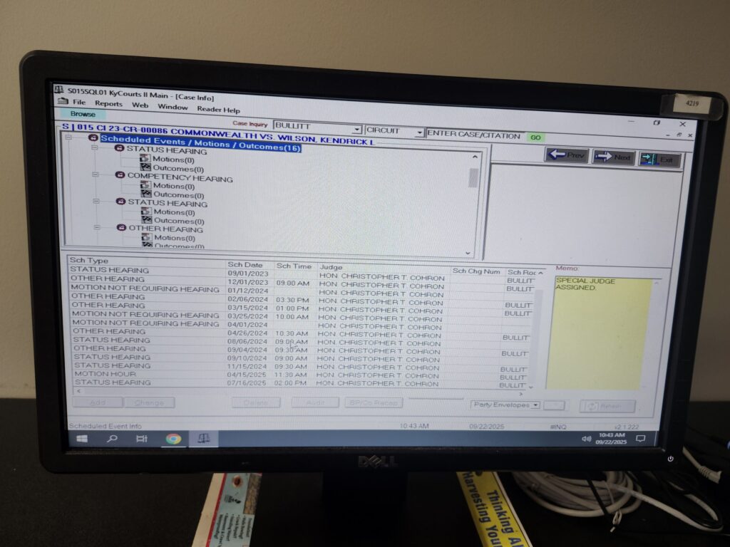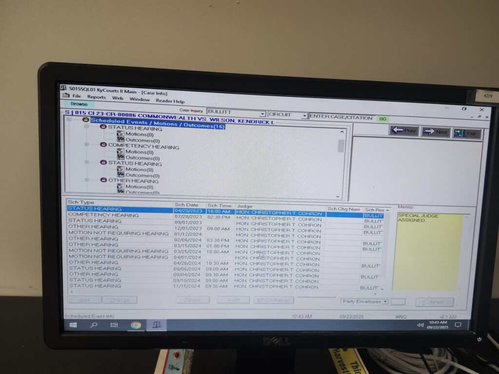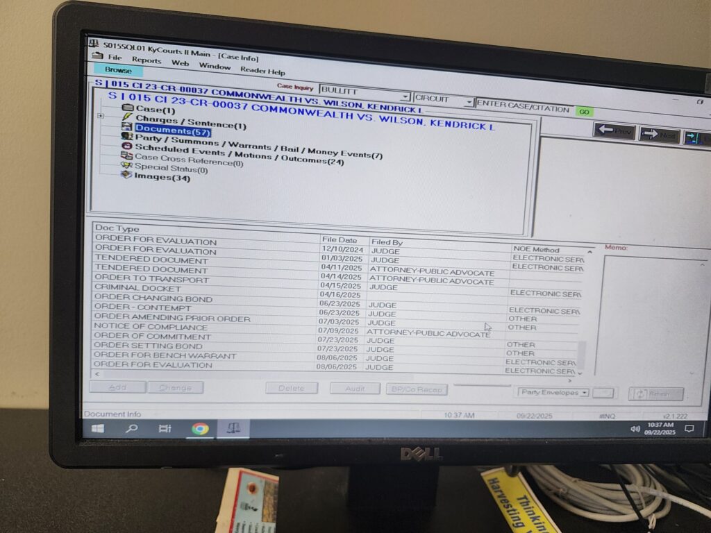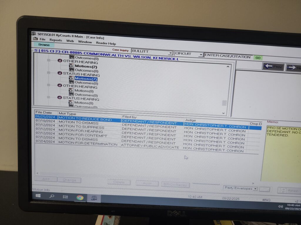 The special appointed judge Cohron has instructed the County Clerk to force all requests for court records to go through his court appointed public defender, which leads to repeated excuses and dead ends.