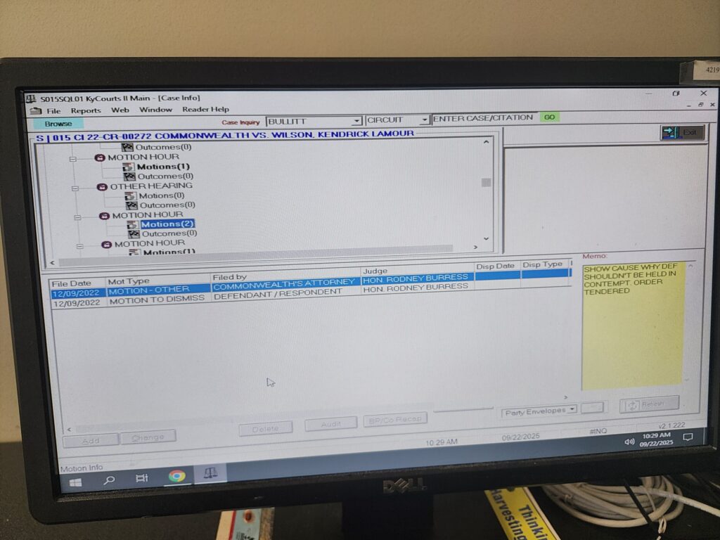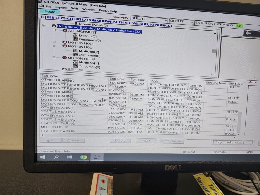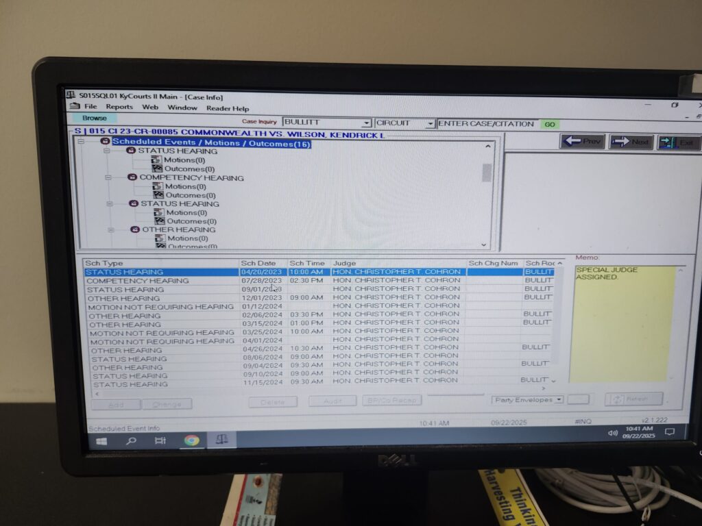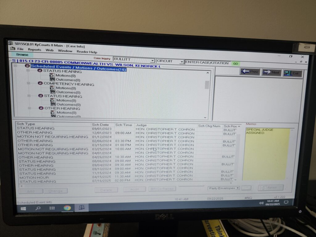 The special appointed judge Cohron has instructed the County Clerk to force all requests for court records to go through his court appointed public defender, which leads to repeated excuses and dead ends.
